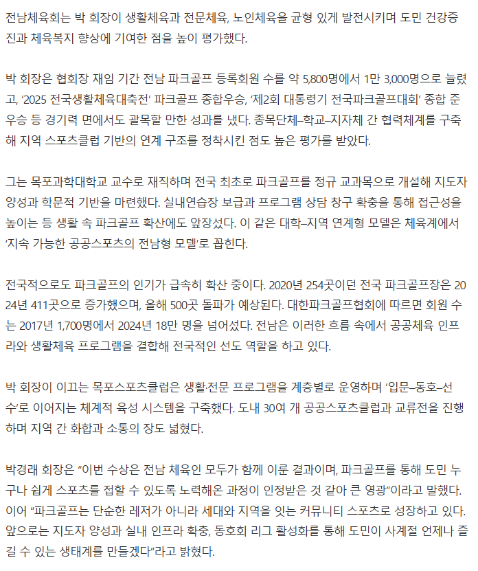 (기사) 박경래 전남파크골프협회장, ‘자랑스러운 전남인’ 선정
